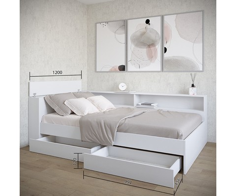 Кровать Ксения 120х200 с ящиками и прикроватным блоком (белый)