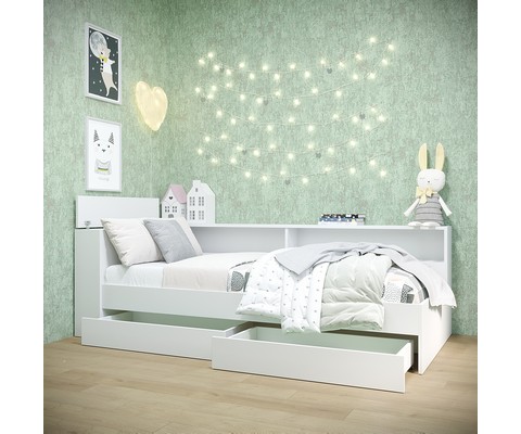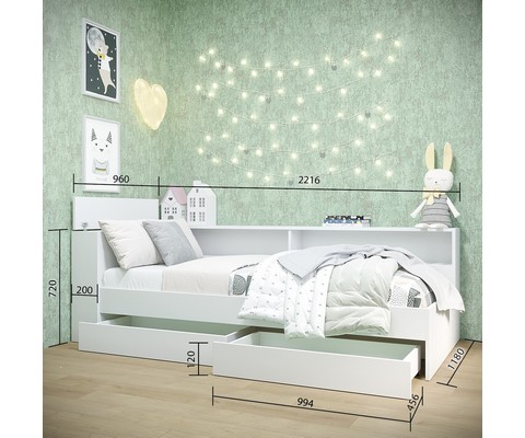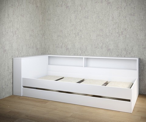 Кровать Ксения 90х200 с ящиками и прикроватным блоком (белый)