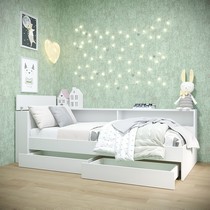 Кровать Ксения 90х200 с ящиками и прикроватным блоком (белый) - это отличное решение для спальной комнаты. В комплект входит кровать, которая оснащена головным блоком, и прикроватный блок, который тоже может служить для хранения различных вещей.