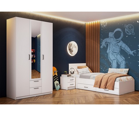 Кровать одинарная с ящиками Бали (белый/шагрень)