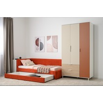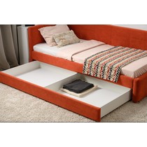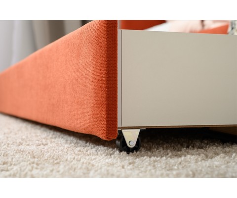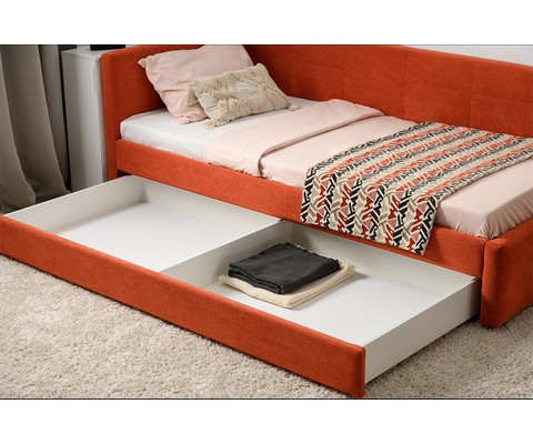 Кровать оснащена выдвижным ящиком с двумя отсеками.