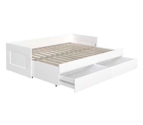 Кровать двуспальная раздвижная Сириус с ортопедическим основанием Лурой и двумя выдвижными ящиками.