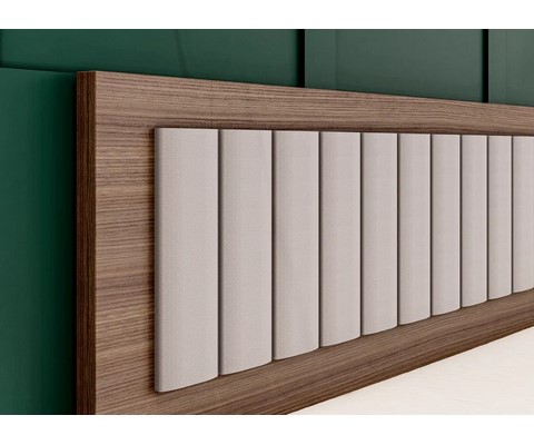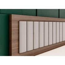 Изголовье кровати выполнено из ЛДСП плиты 32 мм., а также МДФ вставки 16 мм.
