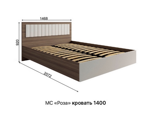 Изголовье кровати 1400 выполнено из расширенной ЛДСП плиты толщиной 32 мм с МДФ вставкой, которая придает ей элегантный внешний вид.