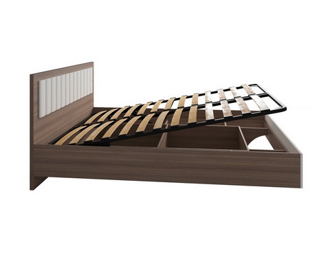 Ортопедическое основание кровати установлено на газлифтах, что позволяет легко поднимать и опускать основание, а также использовать отсеки для хранения вещей.