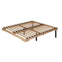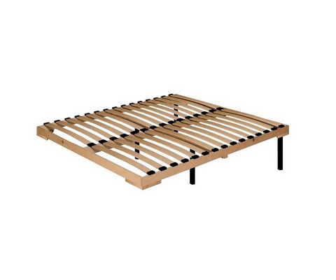 Кровать комплектуется надежным стационарным основанием с деревянным каркасом и гибкими ламелями из фанеры.