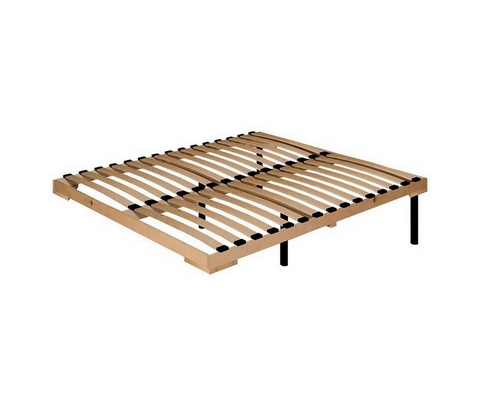 Кровать комплектуется надежным стационарным основанием с деревянным каркасом и гибкими ламелями из фанеры.