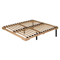 Кровать комплектуется надежным стационарным основанием с деревянным каркасом и гибкими ламелями из фанеры.