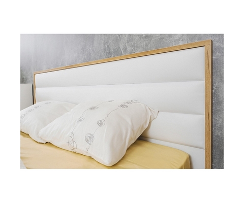 Мягкая спинка со стяжкой обтянута белой экокожей, которая не боится деформации и не требует специального ухода.