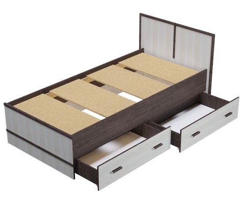 Кровать оснащена 2 вместительными ящиками для хранения.