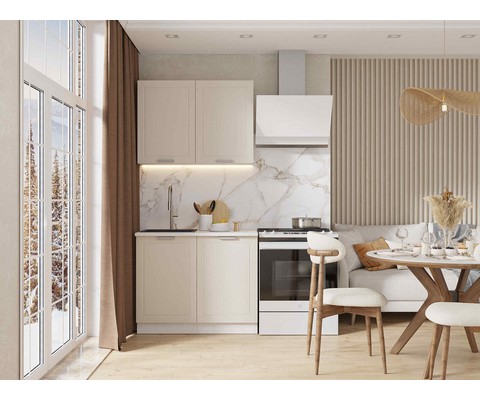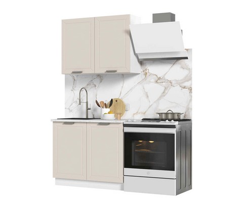 Кухня Альфа 1 м (холст белый, мрамор лацио)