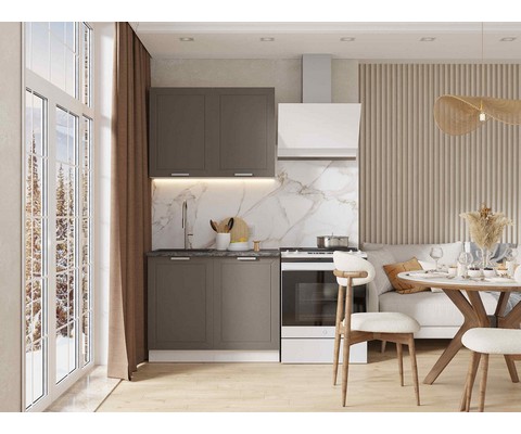 Характеристики:: Кухня Альфа 1м комплектуется столешницей 26 мм в цвете Кастилло темный.