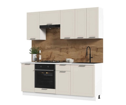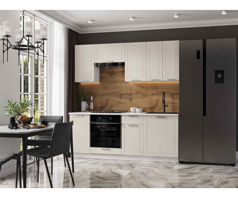 Кухня Альфа 2 м с покрытием фасадов с эффектом шероховатого холста, приятного тактильно, устойчивого к износу и легкого в уходе.