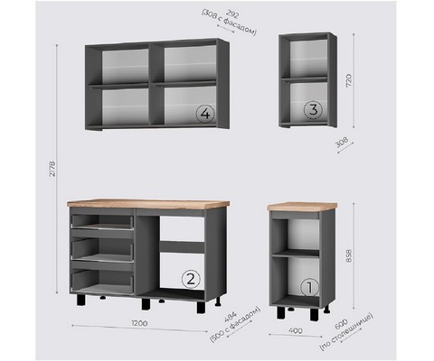 Кухня Асти комплектуется столешницей дуб Кера 38 мм (1200/400 мм).
