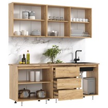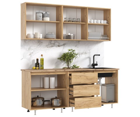 Нижние модули: ширина - 200, высота - 85, глубина - 60 см. *с учетом высоты опор и столешницы
