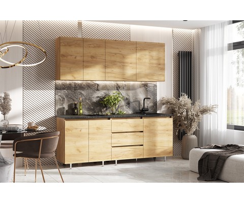 Кухня Челси 2,0м компоновка 2 (дуб крафт, дуб крафт-кастилло)