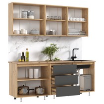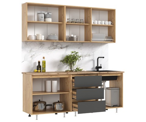 Нижние модули: ширина - 200, высота - 85, глубина - 60 см. *с учетом высоты опор и столешницы