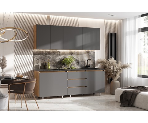 Кухня Челси 2,0м компоновка 2 (дуб крафт, графит-кастилло)