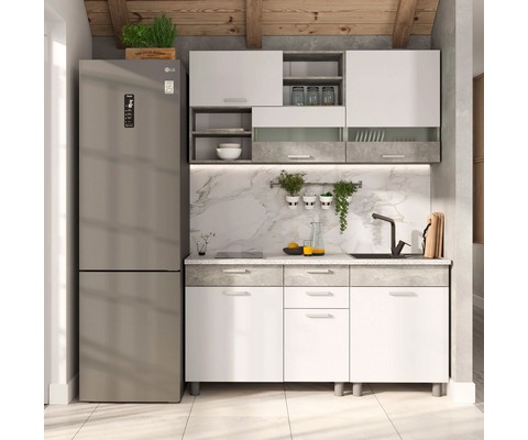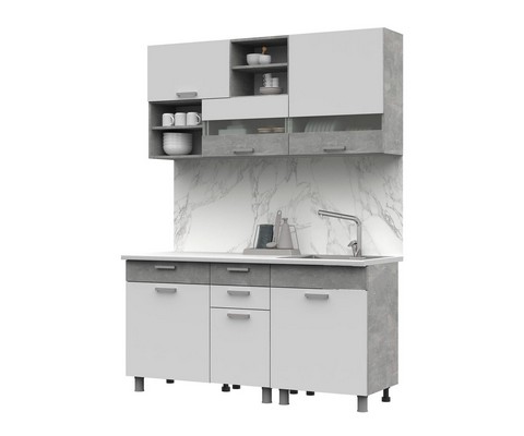 Кухня Денвер 1,6 (Фасад белый/Корпус ателье светлое)