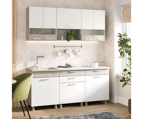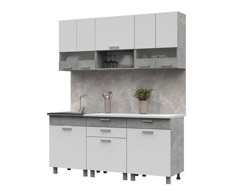 Кухня Денвер 1,8 (Фасад белый/Корпус ателье светлое)