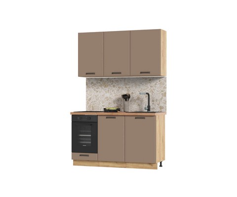 Кухня Призма 1,4 м дуб крафт золото/мокко суперматовый (столешница - дуб вотан)