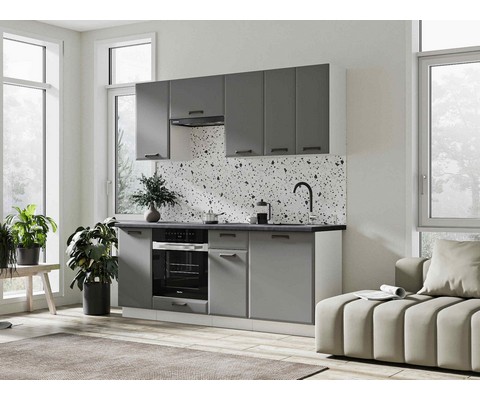 Кухня Призма 2,0 м белый/асфальт суперматовый (столешница - кастилло темный)