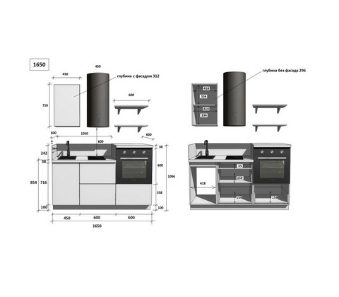 Кухонный гарнитур 1650 вариант 2 Лизет (белый)