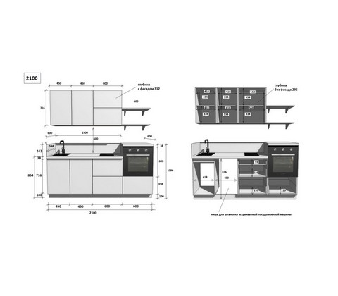 Кухонный гарнитур 2100 Лизет (белый)