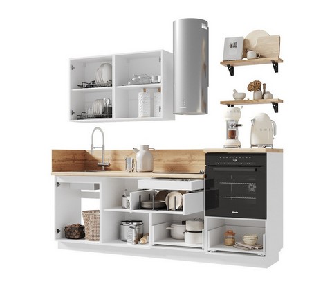 В кухонном гарнитуре 2400 Магнолия ПВХ вариант 5 коллекции Лизет каждая деталь, от премиальной фурнитуры до бесшовных поверхностей, создает кухню, которая станет не только функциональным пространством, но и источником вдохновения для всей семьи.