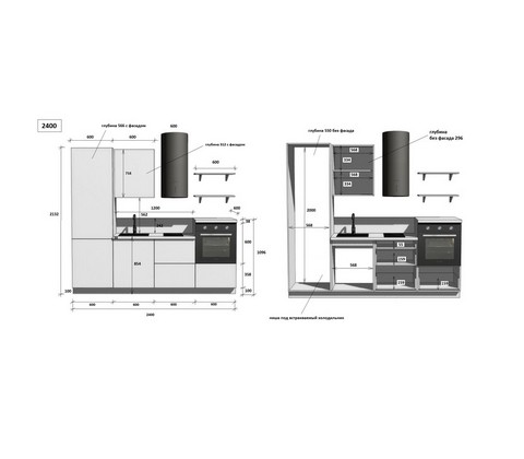 Кухонный гарнитур 2400 Олива эмаль вариант 8.