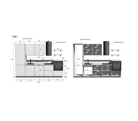 Кухонный гарнитур 3000 Олива эмаль вариант 11.
