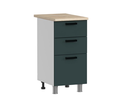 Кухонный гарнитур Аленушка 1 м с 3 ящиками Лаванда Изумруд, скоба черный, сонома