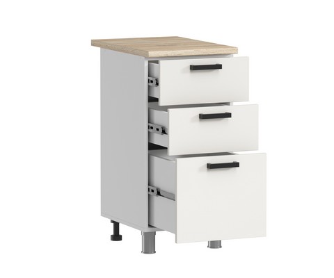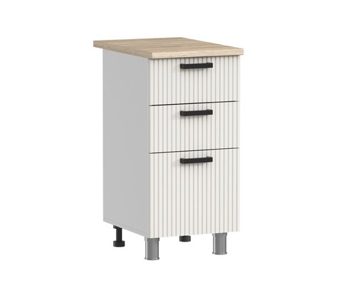 Кухонный гарнитур Аленушка 1 м с 3 ящиками Лаванда Молочный, скоба черный, сонома