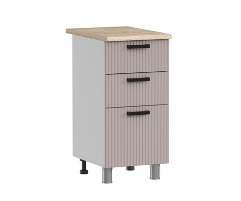 Кухонный гарнитур Аленушка 1 м с 3 ящиками Лотос Кашемир, скоба антрацит, сонома