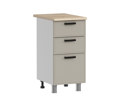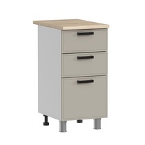 Кухонный гарнитур Аленушка 1 м с 3 ящиками Магнолия Керамика, скоба черный, сонома