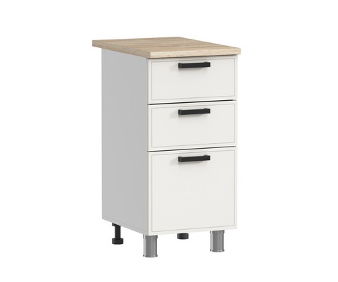 Кухонный гарнитур Аленушка 1 м с 3 ящиками Магнолия Молочный, скоба черный, сонома