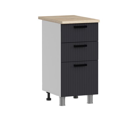 Кухонный гарнитур Аленушка 1м с 3 ящиками Лотос Сталь, скоба антрацит, сонома