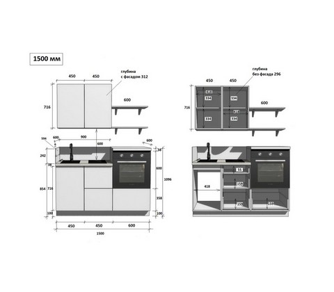 Кухонный гарнитур Ежевика 1500 (белый софт матовый)