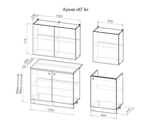 Кухонный гарнитур КГ 6 1.6 м включает 2 верхних и 2 нижних шкафа.