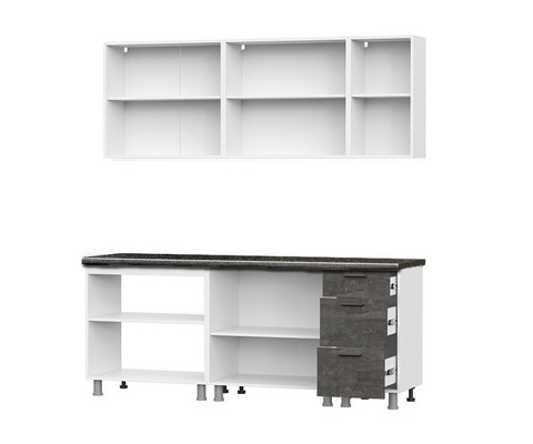 Кухонный гарнитур Модус 2 метра (белый/камень темный/черный) со столешницей 38 мм