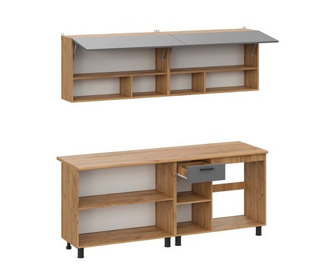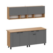 Кухонный гарнитур Монако 2 м выполнен в стильном сочетании цветовой гаммы дуб золотой, графит и дуб вотан.
