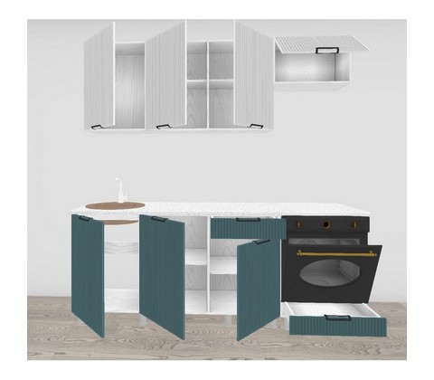 Готовый кухонный гарнитур в светлой, свежей гамме, сочетающий элегантный дизайн, полную комплектацию и продуманную функциональность.