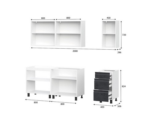 Кухонный гарнитур Вельвет 2 метра (белый/бетон/графит) без столешницы