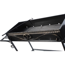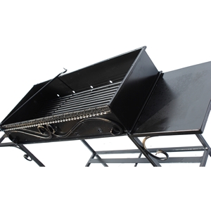 Дополнительная информация: толщина стенок жаровни 3 мм, дна – 3 мм. Полки по бокам мангала позволят поставить блюдо с шашлыком или бутылки с водой. По периметру каркаса жаровни расположены ребра жесткости, на дне имеется решетка, - это почти исключает деформации от воздействия высокой температуры.
