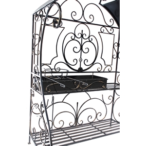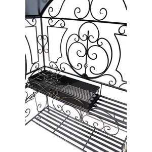 Дополнительная информация: мангал из стали марки СТ-3. Крыша позволяет готовить даже в непогоду. Топка мангала – съемная, стенки усилены ребрами жесткости, на дне решетка, это позволяет с легкостью очищать и переносить жаровню, а также дает устойчивость к термическим деформациям. Украшения мангала выкованы вручную.