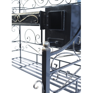 Дополнительная информация: крыша мангала защитит от дождя. Мангал изготовлен из стали марки СТ-3, толщина стенок топки 3 мм, дно 3 мм. Толщина стенок печки для казана 3 мм. Решетка на дне продлевает срок службы топки в несколько раз, плюс ребра жесткости по периметру жаровни помогают предотвратить температурную деформации. Топку можно снять, её легко чистить, перемещать или заменять.