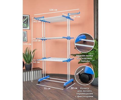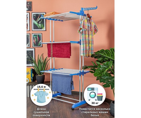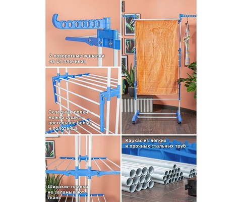 Напольная сушилка для вещей, включая полотенца и постельное белье.