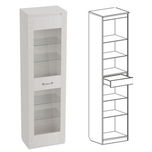 Витрина с двумя отделениями со стеклянными полками и выдвижным ящиком.