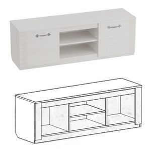ТВ-тумба с закрытыми отделениями и открытыми полками.