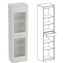 Витрина с двумя отделениями со стеклянными полками и выдвижным ящиком.